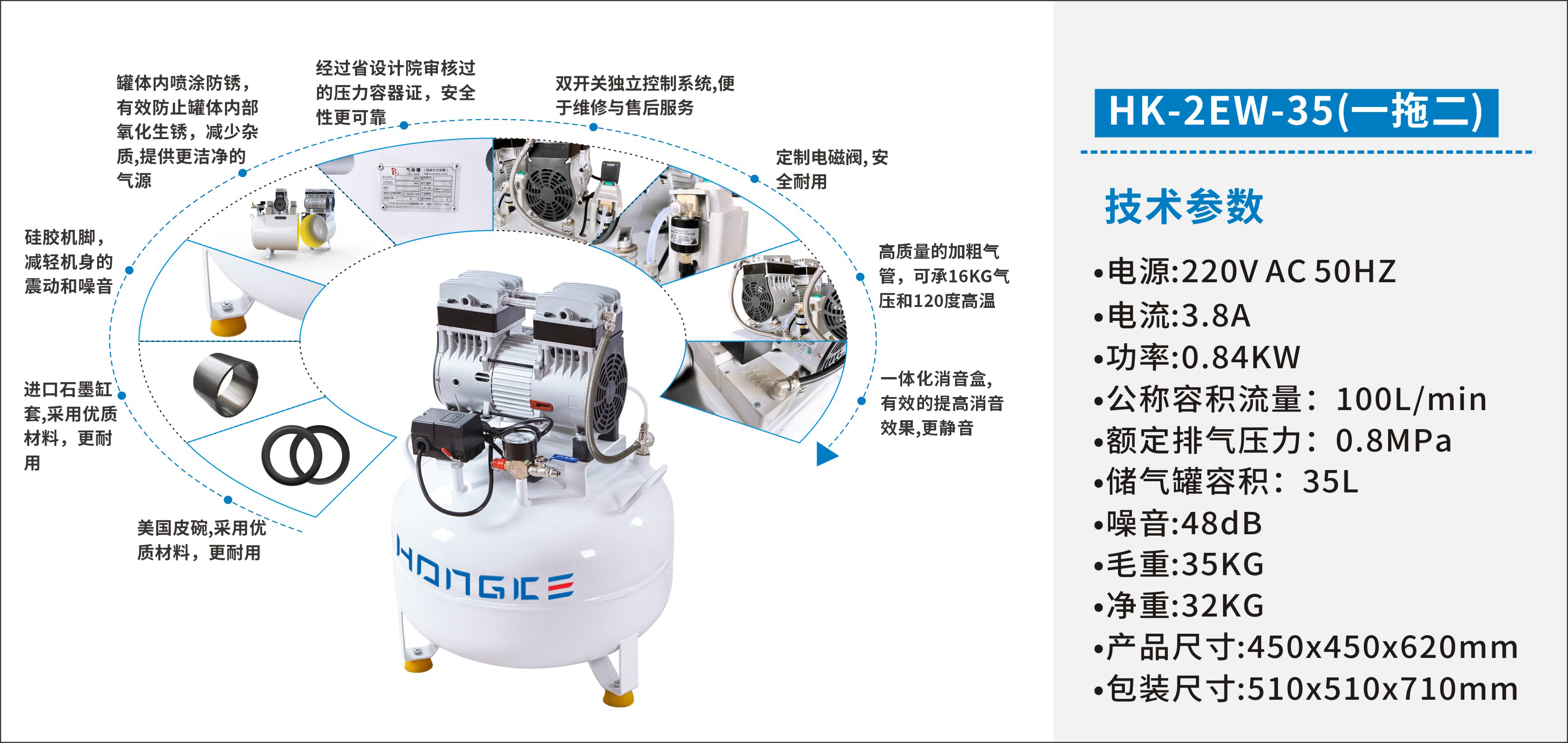 产品名称:牙科无油静音空压机